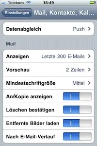 Ein nicht unerheblicher Stromfresser ist die Push-Funktion des iPhones, die schon mit iPhone OS3 auf das iPhone kam und auch in iOS4 enthalten ist. Prinzipiell handelt es sich dabei um eine sinnvolle Erweiterung der iPhone Firmware. Allerdings werden hierbei Mails nicht regelmäßigen Abständen am Server abgeholt, sondern der Server informiert das iPhone, wenn neue Nachrichten vorliegen. Damit dies in sekundenschnelle geschieht, ist es notwendig, dass das iPhone eine permanente Verbindung zum Server behält. Der dabei entstehende Traffic ist zwar zu vernachlässigen, jedoch verbraucht die Push-Funktion erheblich Strom.